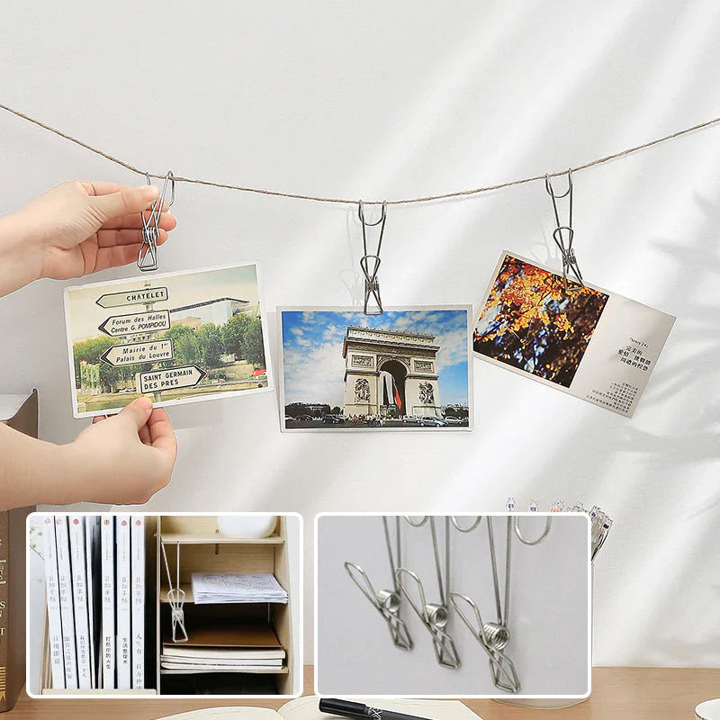 Ces pinces à linge robustes en acier inoxydable offrent de multiples possibilités d'utilisation et une longue durée de vie. Parfaites pour une utilisation quotidienne à la maison et au bureau.