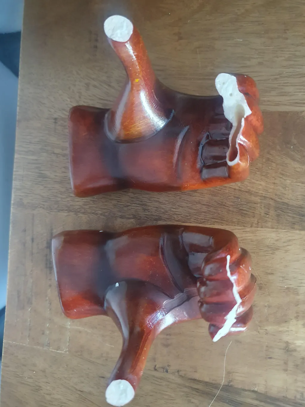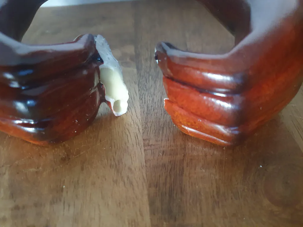 Objet reçu également cassé dans l’emballage. Dans la description le produit devait être en bois et il est en résine très fine. J’espère avoir une réponse rapidement et un éventuel remboursement. Merci